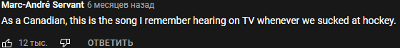 "Будучи канадцем, я помню, как слышал эту песню по телевизору всякий раз, когда мы плохо играли в хоккей."