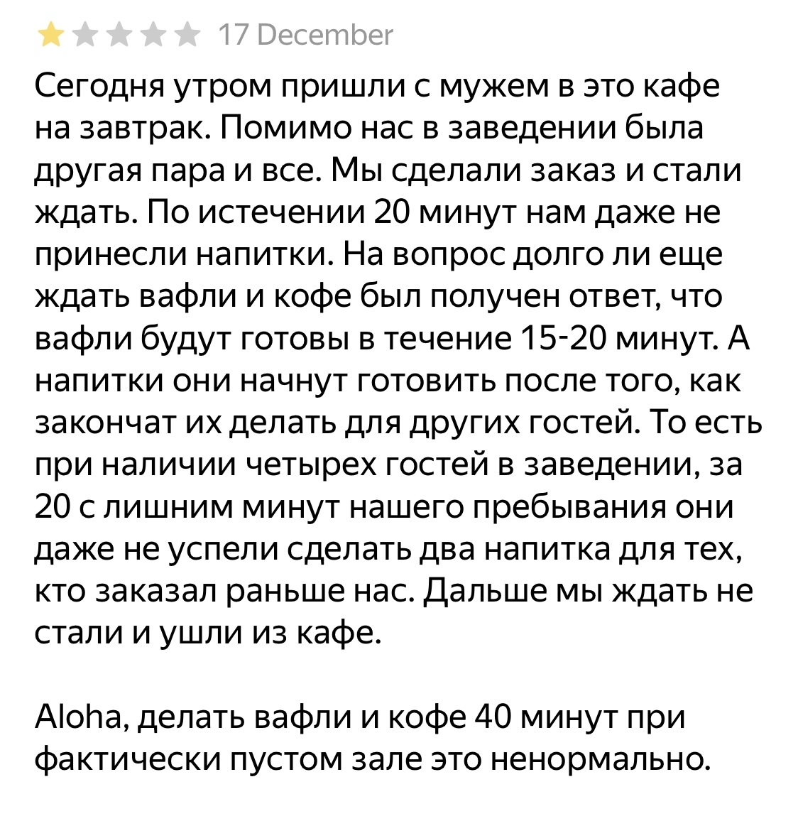 Неделю назад сходили с мужем в кафе Aloha в Нижнем Новгороде и поход этот вышел таким эпичным, что я в итоге оставила отзыв.
