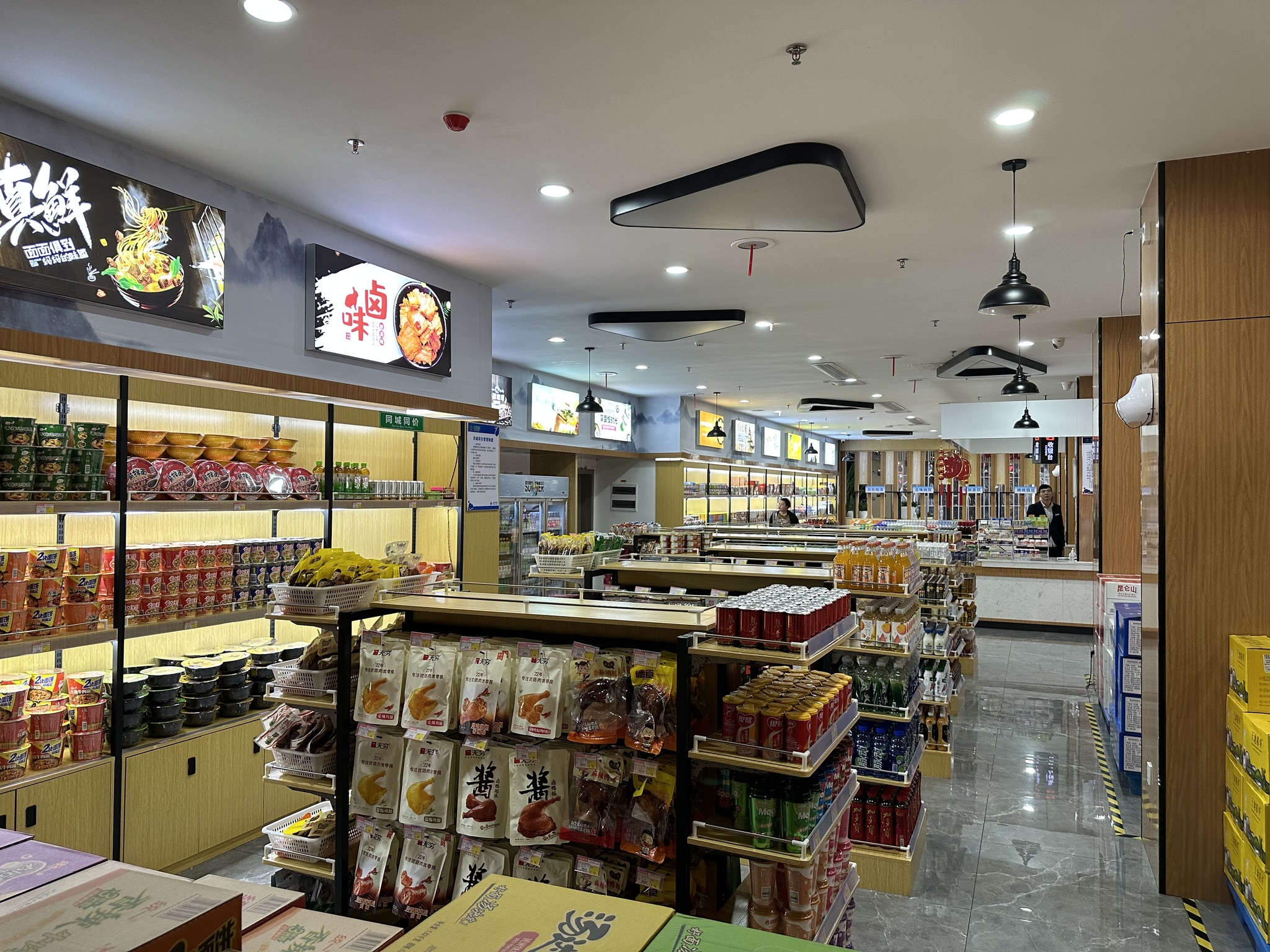 Имеется фуд-корт с разной лапшой, пельменями и прочей едой: