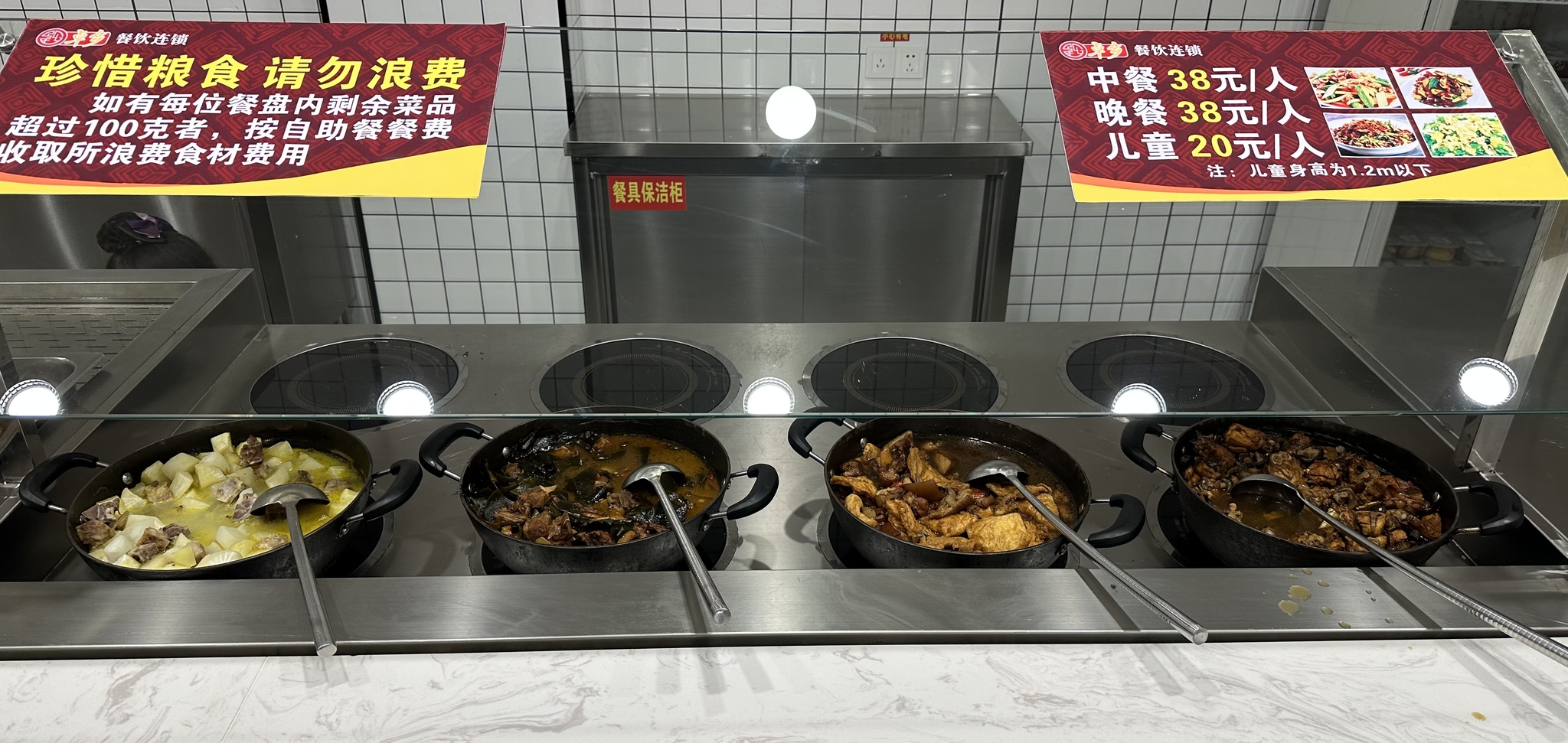 Здесь безлимитная еда за 38 юаней (425 рублей) с человека, типа шведский стол