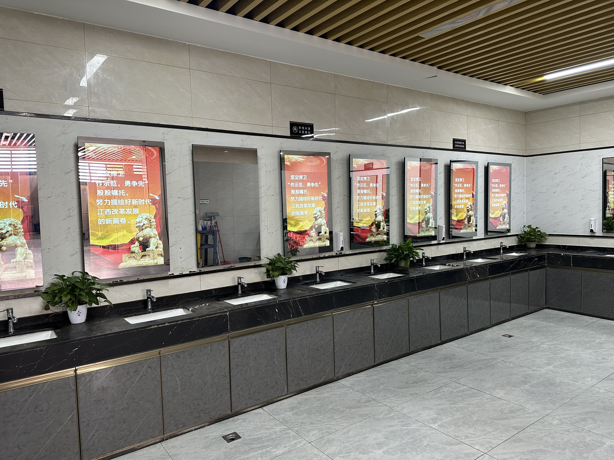 На зеркалах крутят социальную рекламу, принципы социализма, например: