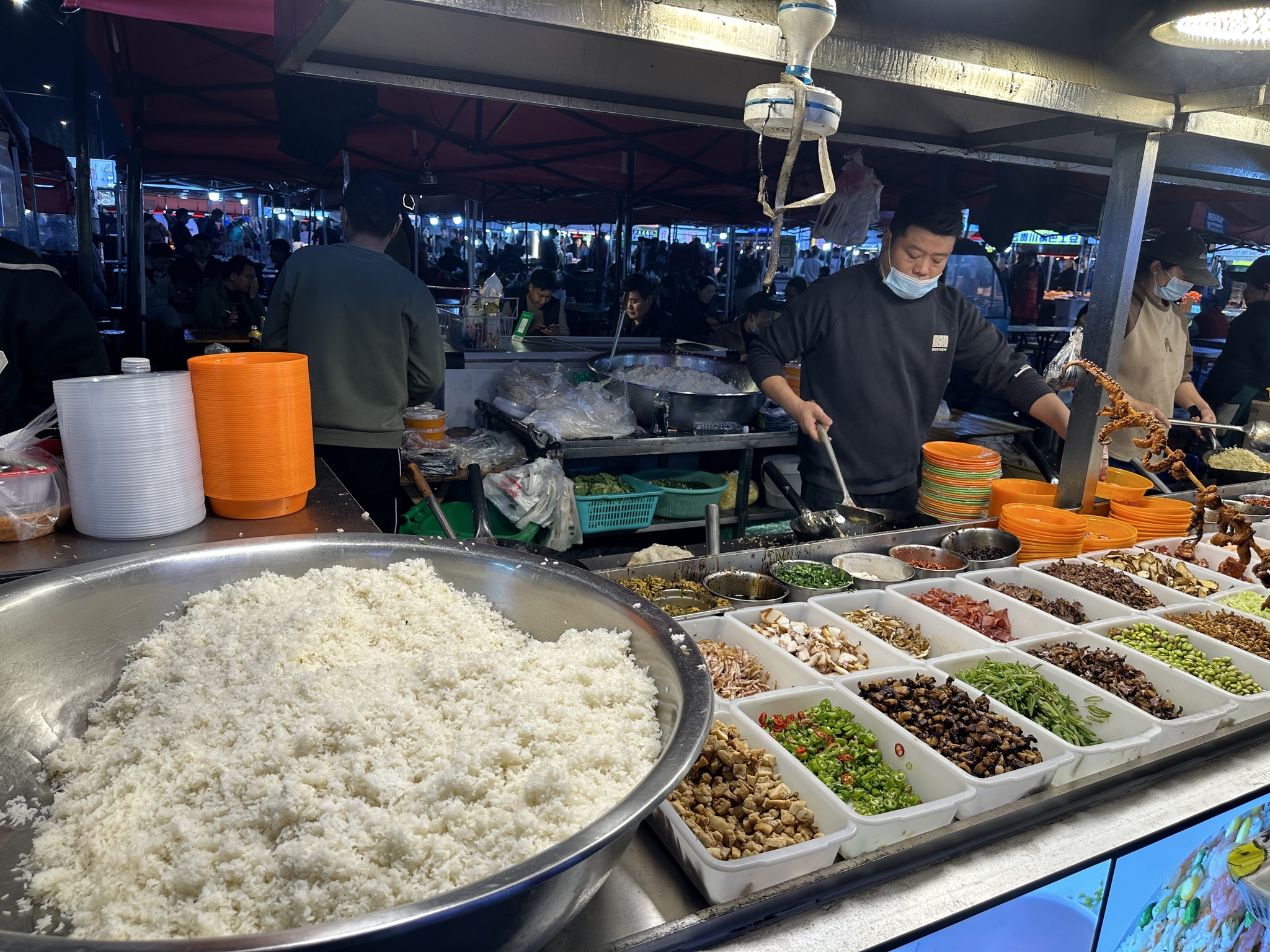 Цены на рынке низкие, даже нет смысла особо заострять на них внимание. Поесть в принципе можно и на 5 юаней - от 50 рублей. Чтобы обожраться может потребоваться капитал от 100 до 500 рублей.