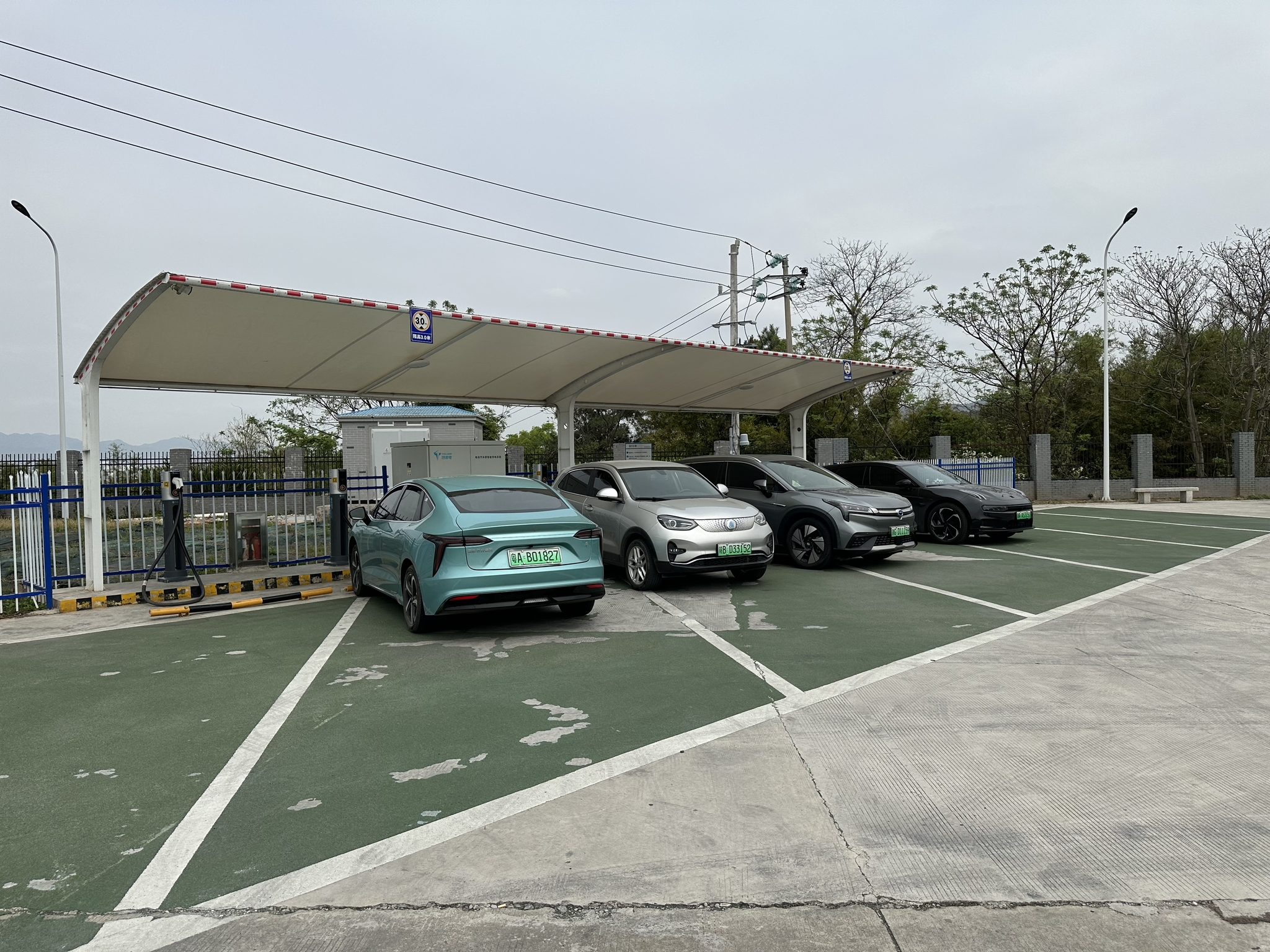 В обязательном порядке - зарядка для электромобилей. На каждой остановке сейчас имеется, количество постоянно увеличивается, найти зарядку на трассе вообще не проблема. Заряжаемся в хорошей компании, моя машина третья слева: