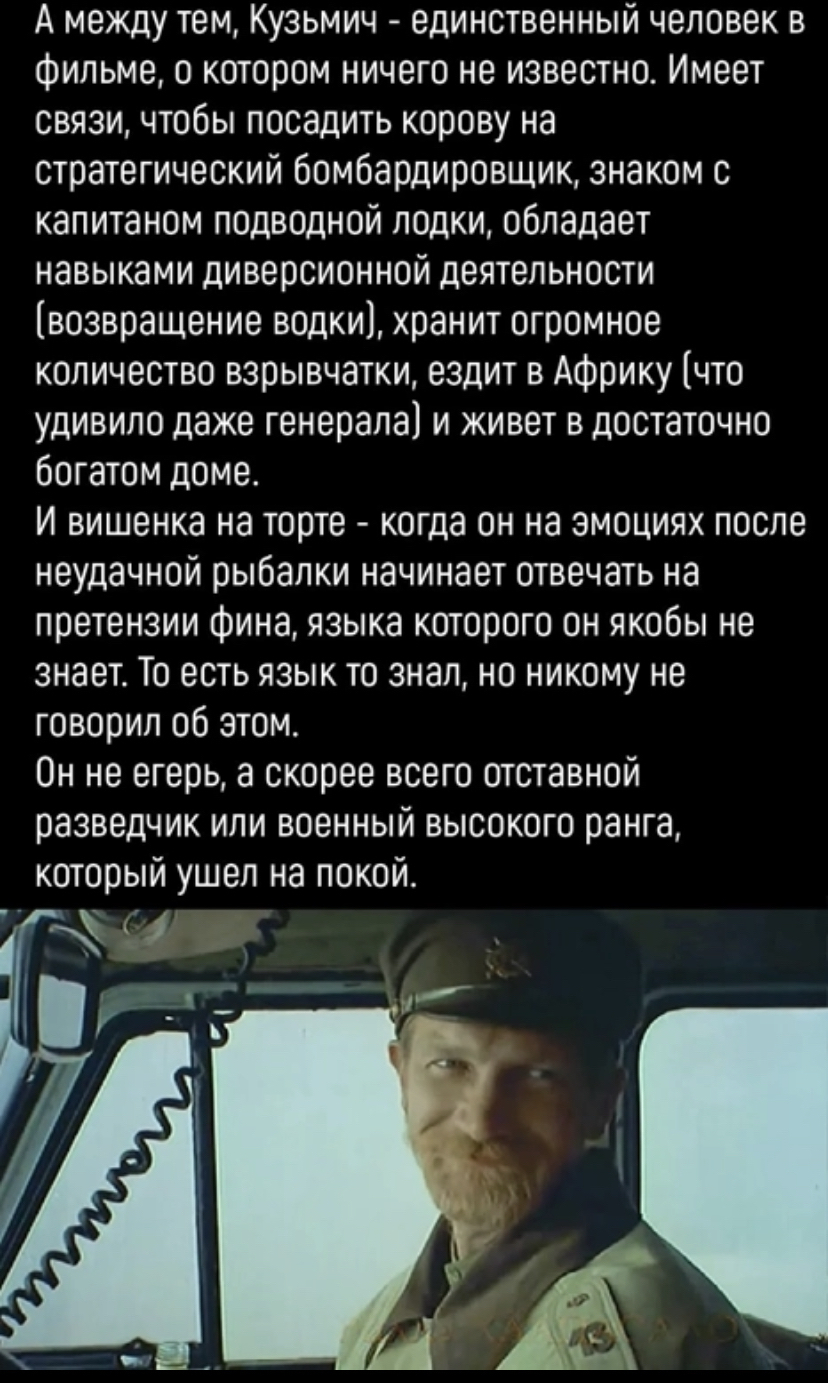 9. В одной из сцен появляется персонаж «Кабан», которого сыграл Юрий Степанов. Бывший бандит, а теперь успешный бизнесмен. Есть версия, что это отсылка к сериалу «Бригада», где был персонаж «Кабан» (друг Саши Белого), который ни разу не появился в кадре. «Алле, Кабан? Здорова, брат, это Белый».
