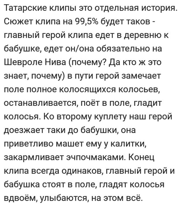 Живу в Татарстане. Теперь клипы немного другие: ездят уже на Крузаках или на Лексусах.