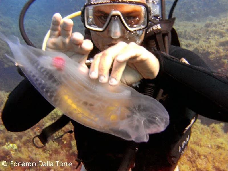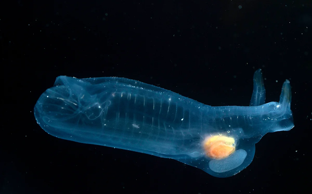 Не рыба, не медуза, не моллюск и даже не червь — что ты такое, кусок холодца, гонимый течением? Прозрачное тело, похожее и не похожее на рыбу одновременно, без чешуи, мозга, с какой-то оранжевой пельмениной внутри... Такова сальпа, животина столь же интересная, сколь и странная на первый взгляд.