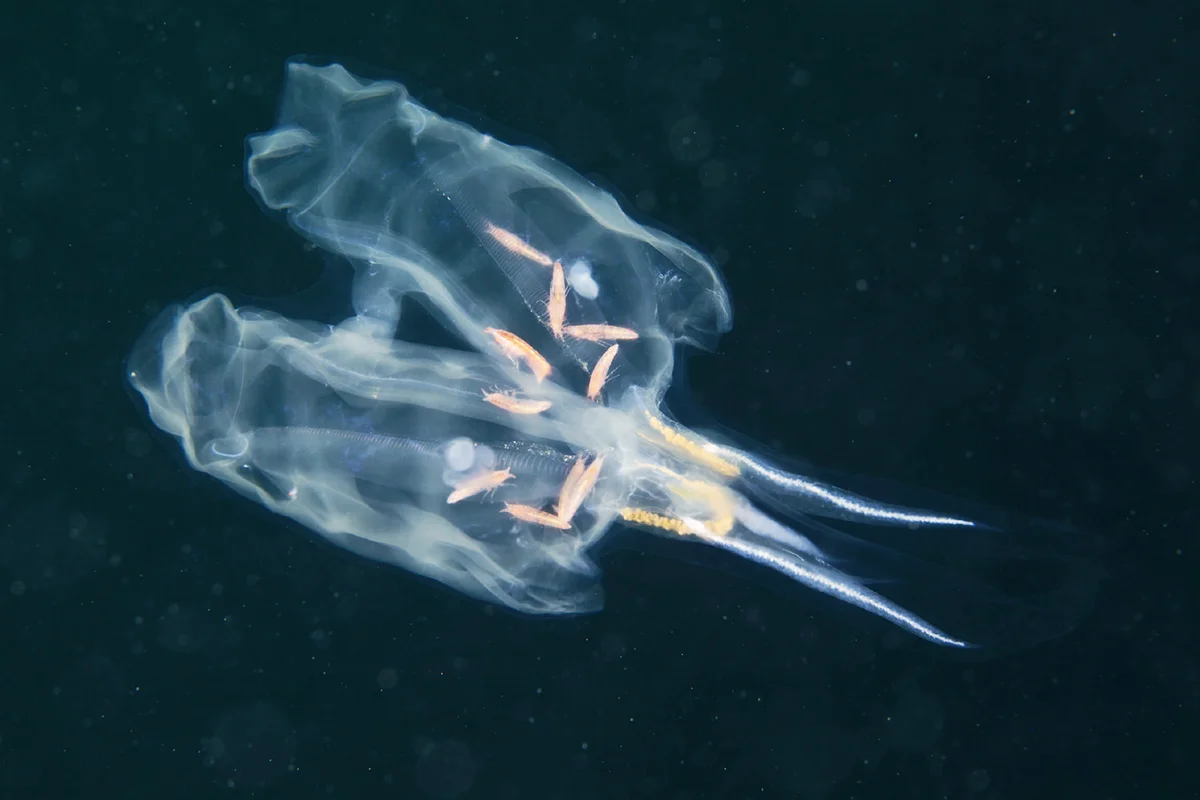 Ещё там были замечены вот такие странные призрачные рыбы. Они называются морские слизни.