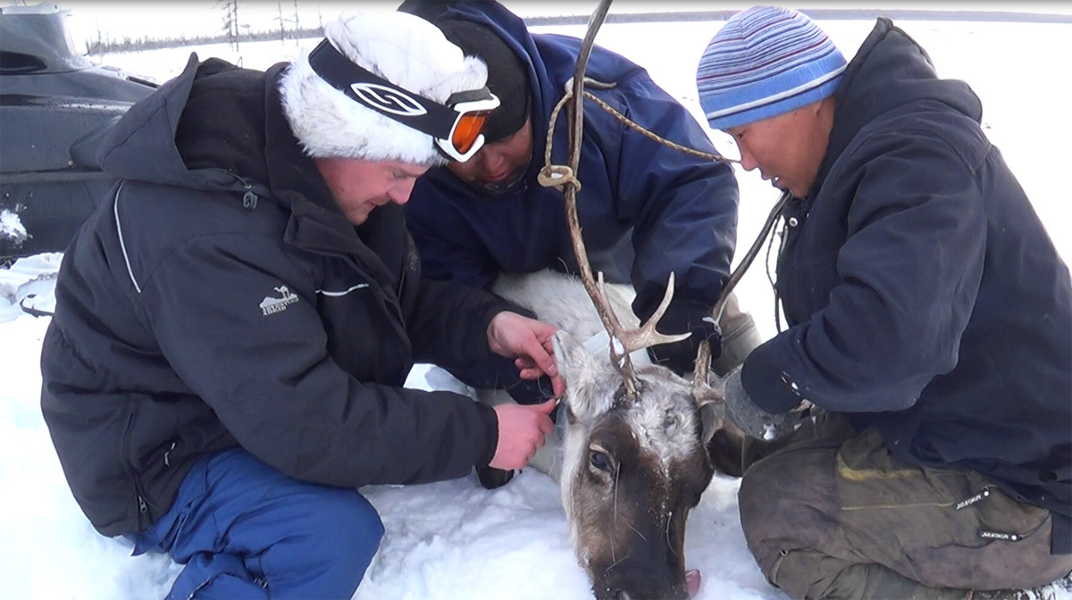 Ещё один важный биондикатор — это дикий северный олень. Поскольку стреляние в жопу, подползание и хватание руками уже заняты, северных оленей арканят. Поджидают где-нибудь на речной переправе в период миграции и — раз! — петлю на шею. А потом уже вяжут, колят снотворным и вешают трекер.