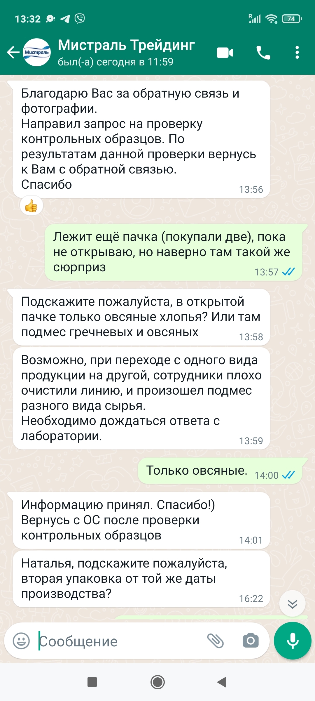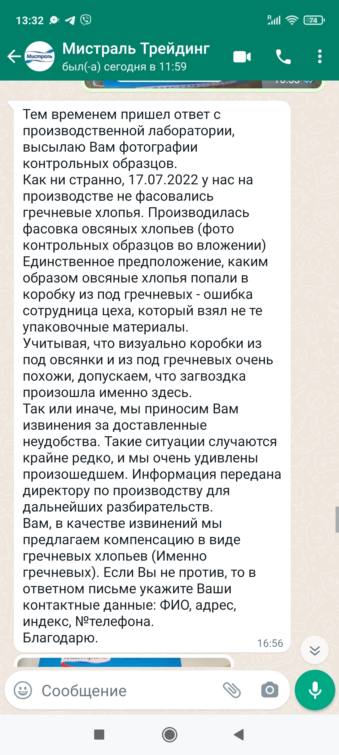 Не велика беда, но сын любит гречневые. Решила позвонить по телефону горячей линии. Рассказала об этой ситуации. Позже со мной связался менеджер через Вайбер. Ему я переслала фотографии