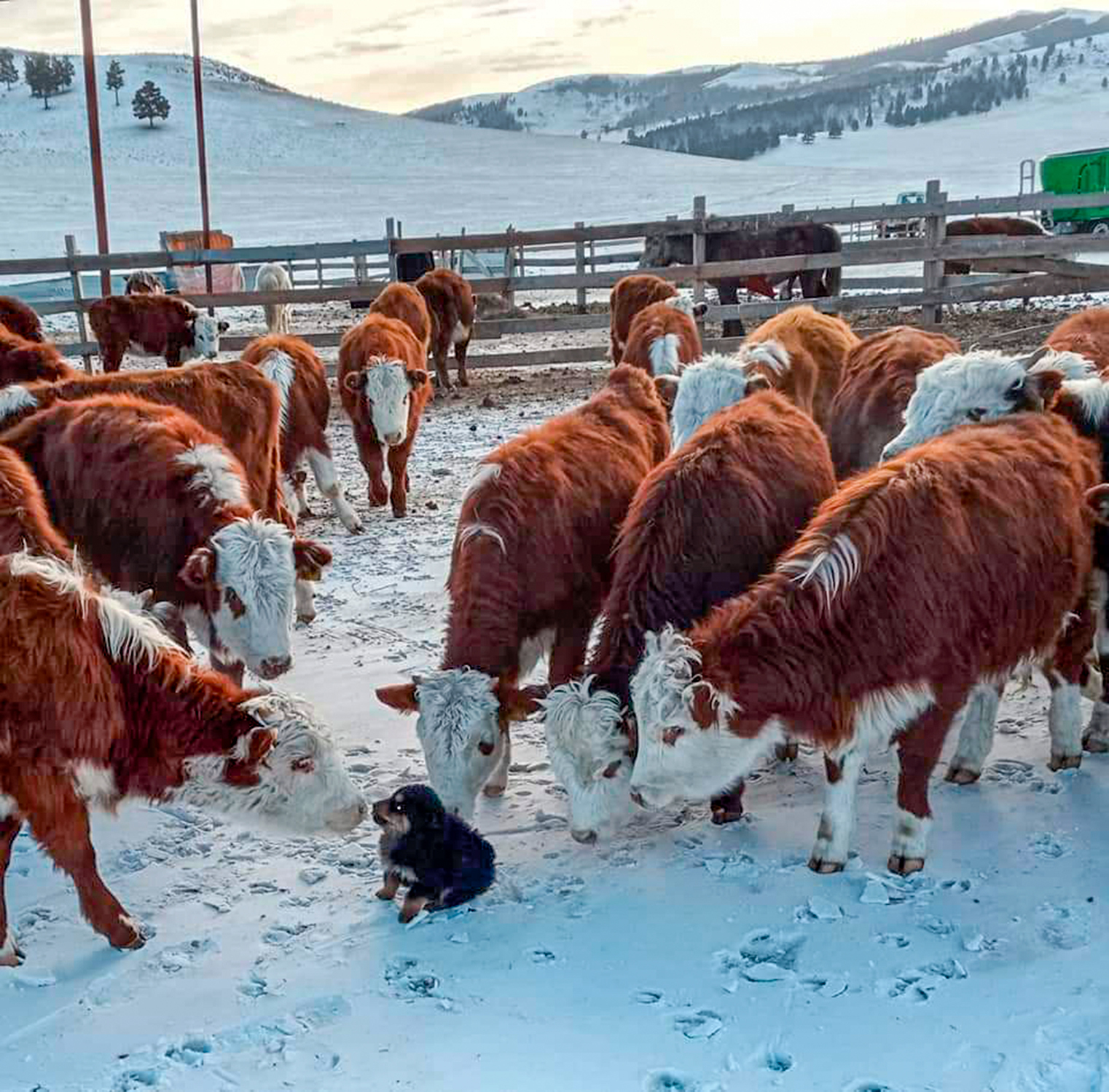 Щенок банхара, будущий монгольский волкодав, знакомится с подопечными.