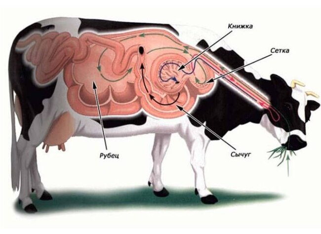 🐮 Коровы содержат в рубце сложнейшую систему из бактерий, простейших, грибов, архей и вирусов. Именно эту братию коровы и кормят поглощаемой травой, а затем переваривают часть собственной, постоянно растущей, микрофлоры. Живые клетки микрофлоры зачастую активно плавают и не попадают в следующие отделы желудка, зато почившие клетки впоследствии перевариваются.