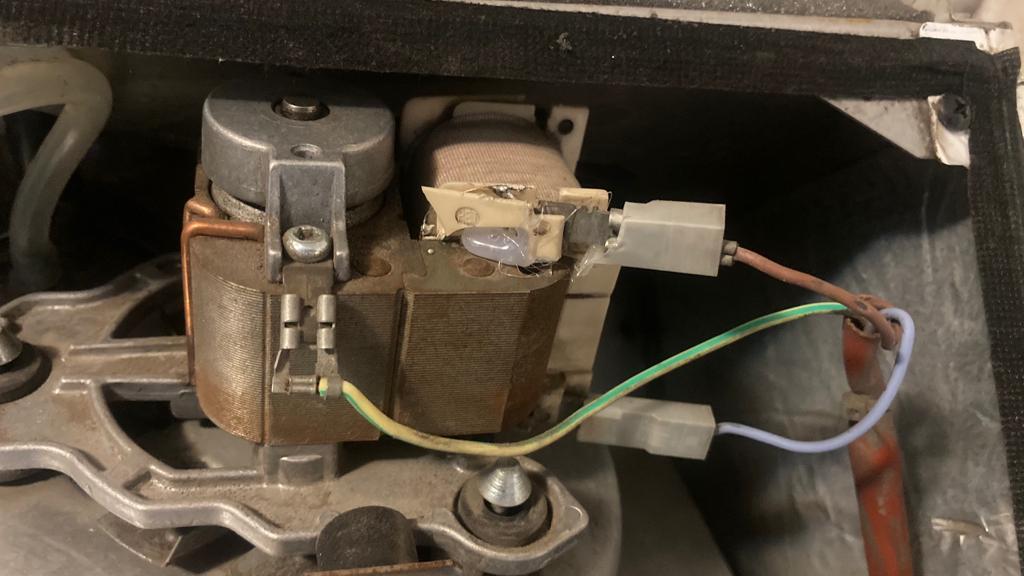 Приходит коллега данного субъекта, находит сгоревший предохранитель на плате котла, меняет, котел начинает запускаться, но стопится при запуске с ошибкой, начинает разбираться, и находит выломанный контакт катушки вентилятора дымохода. Как тот товарищ умудрился его выломать для меня загадка. Я так понял что он толи его крышкой прижал, толи коротнул его и дернулся, в общем тут уже факт налицо, испорчен вентилятор. Второй мастер пытается привести котел в чувство.