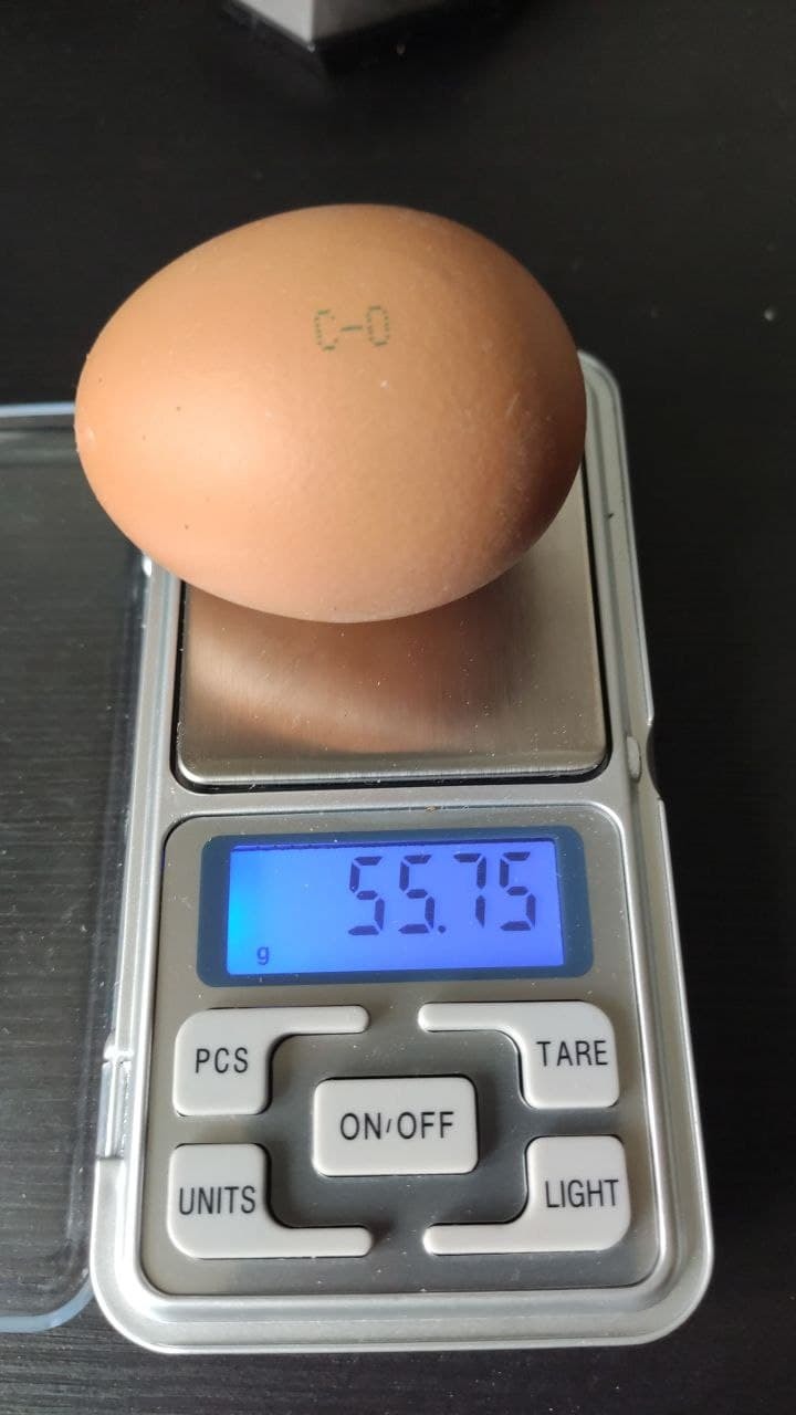 Вооружившись весами, решил провести измерения. На упаковке написан ГОСТ 31654-2012, вес яйца отборной категории 65-74,9г.