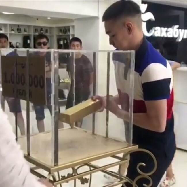 Одна якутская компания несколько лет назад решила, что это и вовсе невозможно. И объявила, что каждый, кто купит у них сертификат на н-нную сумму денег, получит возможность вытащить имитатор 12-киллограммового слитка из этого аквариума и если он сделает это с первой попытки - то получит 1 миллион рублей.