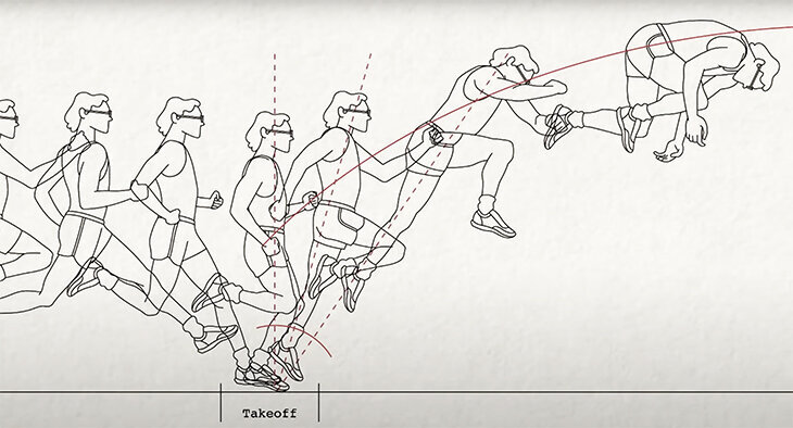 Дело в том, что самая типичная ошибка прыгунов в длину при стандартном отталкивании — остановка плечей на планке. Из-за этого теряется горизонтальная скорость и падает дальность прыжка. Но чтобы прокрутить сальто, плечи должны двигаться вперед, иначе вы не скрутите оборот. Это заставляет спортсмена не останавливаться и позволяет полностью сохранить горизонтальную скорость.