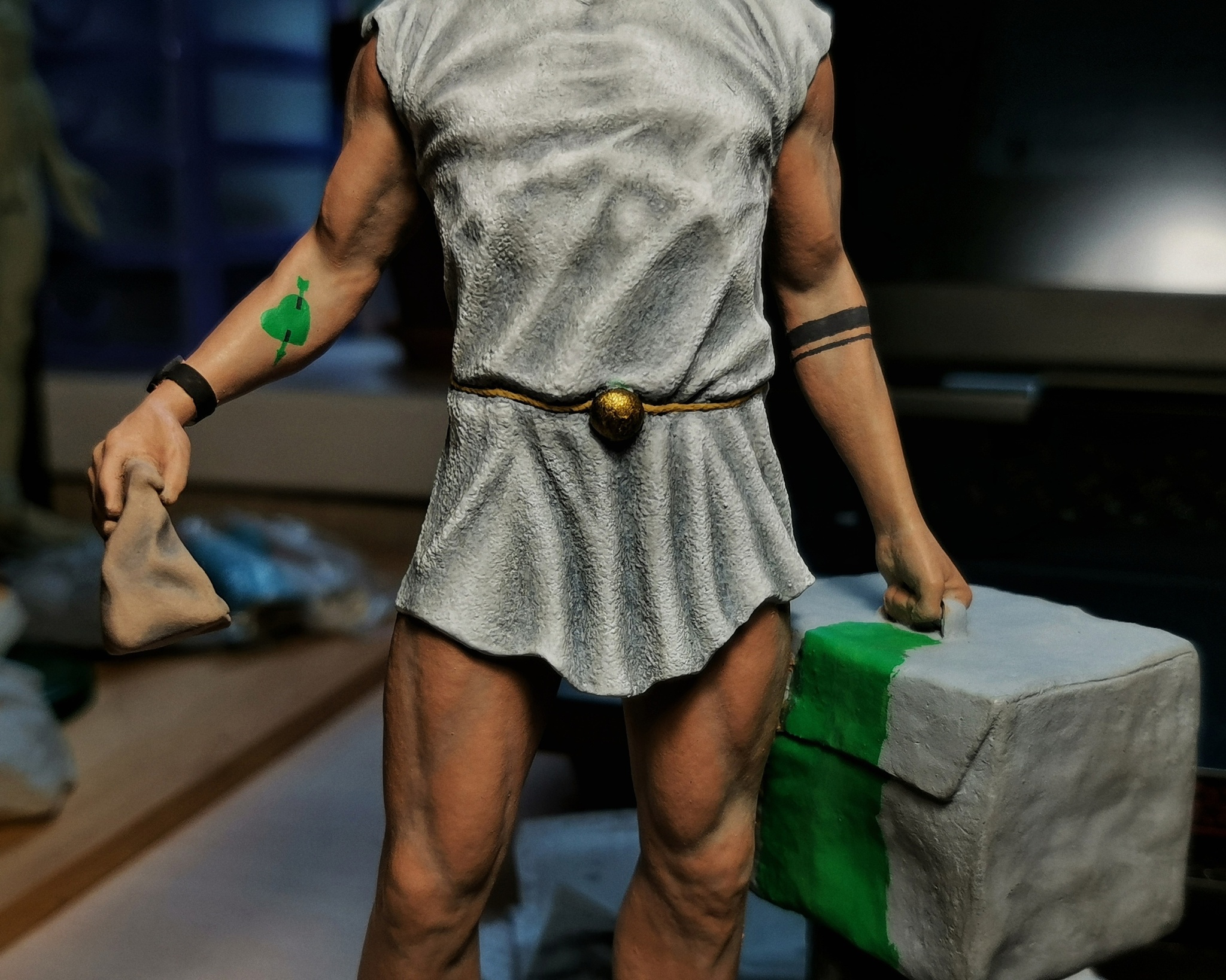 На готовой отливке попросили долепить некоторые элементы и добавить тату, дабы осовременить образ