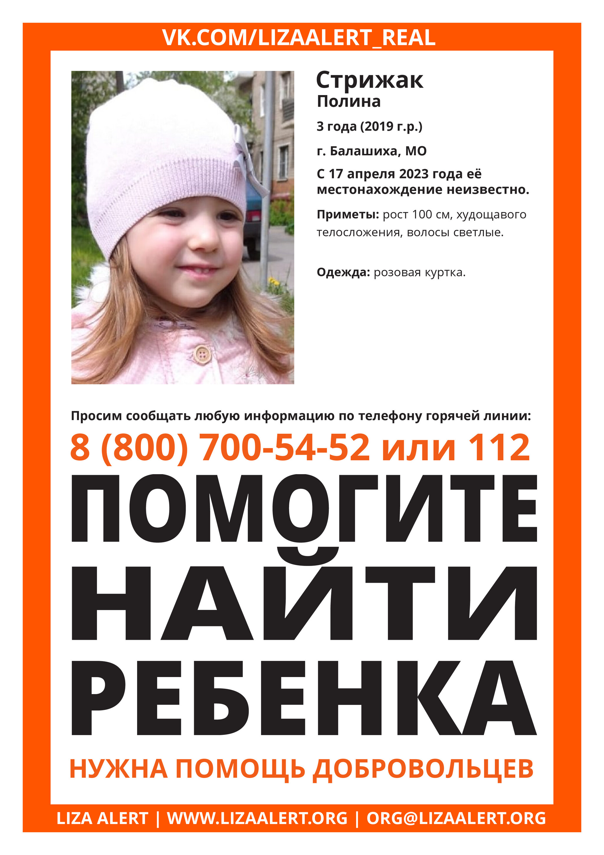 О местонахождении ребенка неизвестно с 17 апреля, когда в последний раз Полина была запечатлена на камерах в подъезде вместе с мамой.