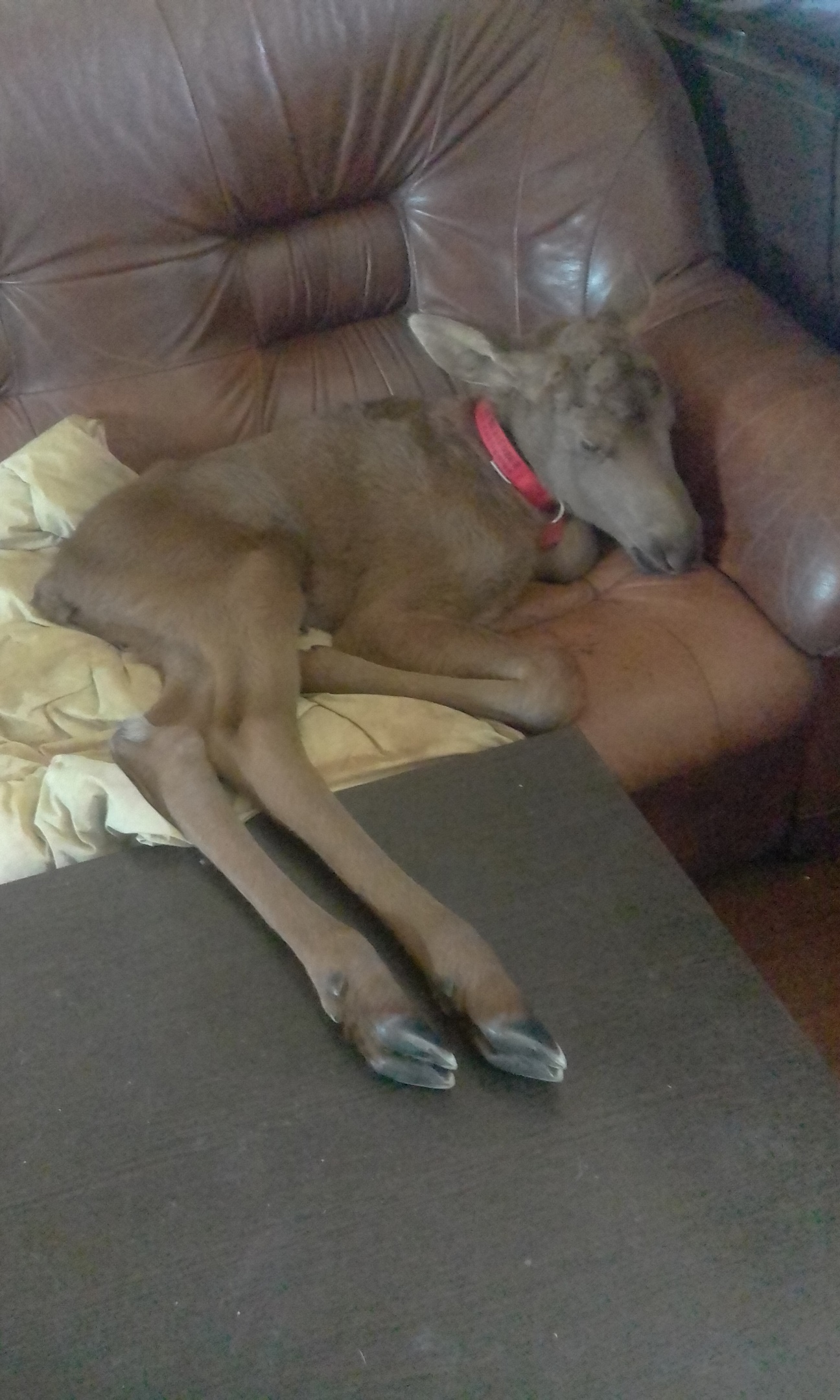 На резонный вопрос: Мама, а зачем вы домой привели какого-то оленя? Мне отвечают, что это лось. Которому от силы неделя. И он будет жить с нами. Окей, думаю я, лось в хате. Лось. В. Хате. Класс.