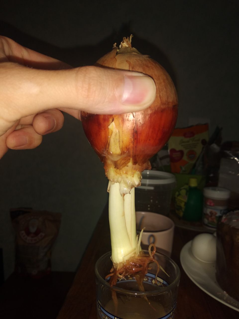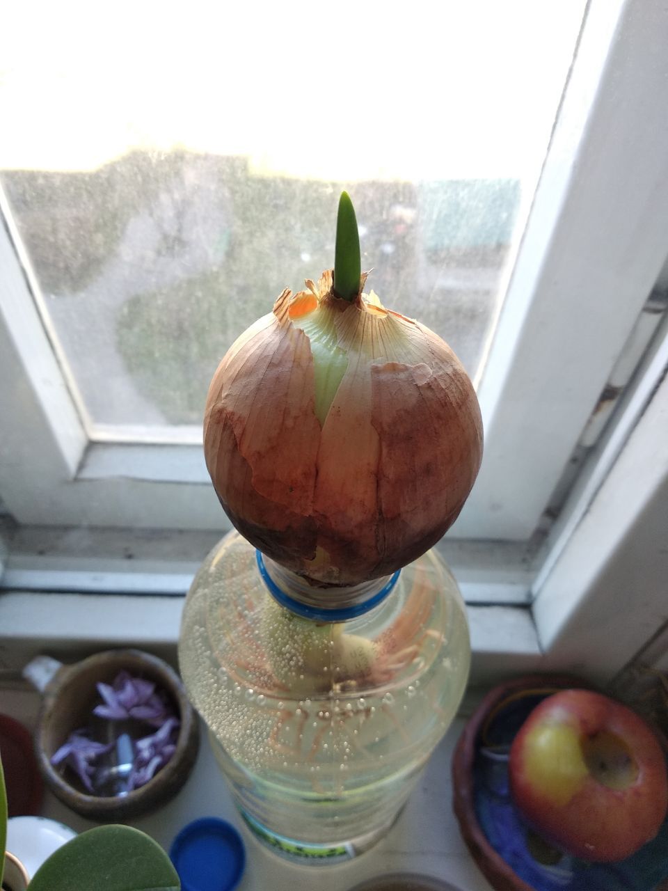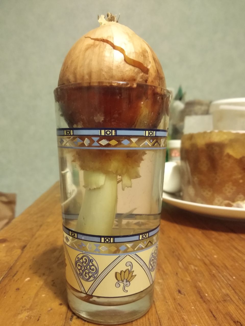 Наверное, первый раз в жизни решил попробовать что-то вырастить - посадил луковицу в стакан с водой и поставил на окно.