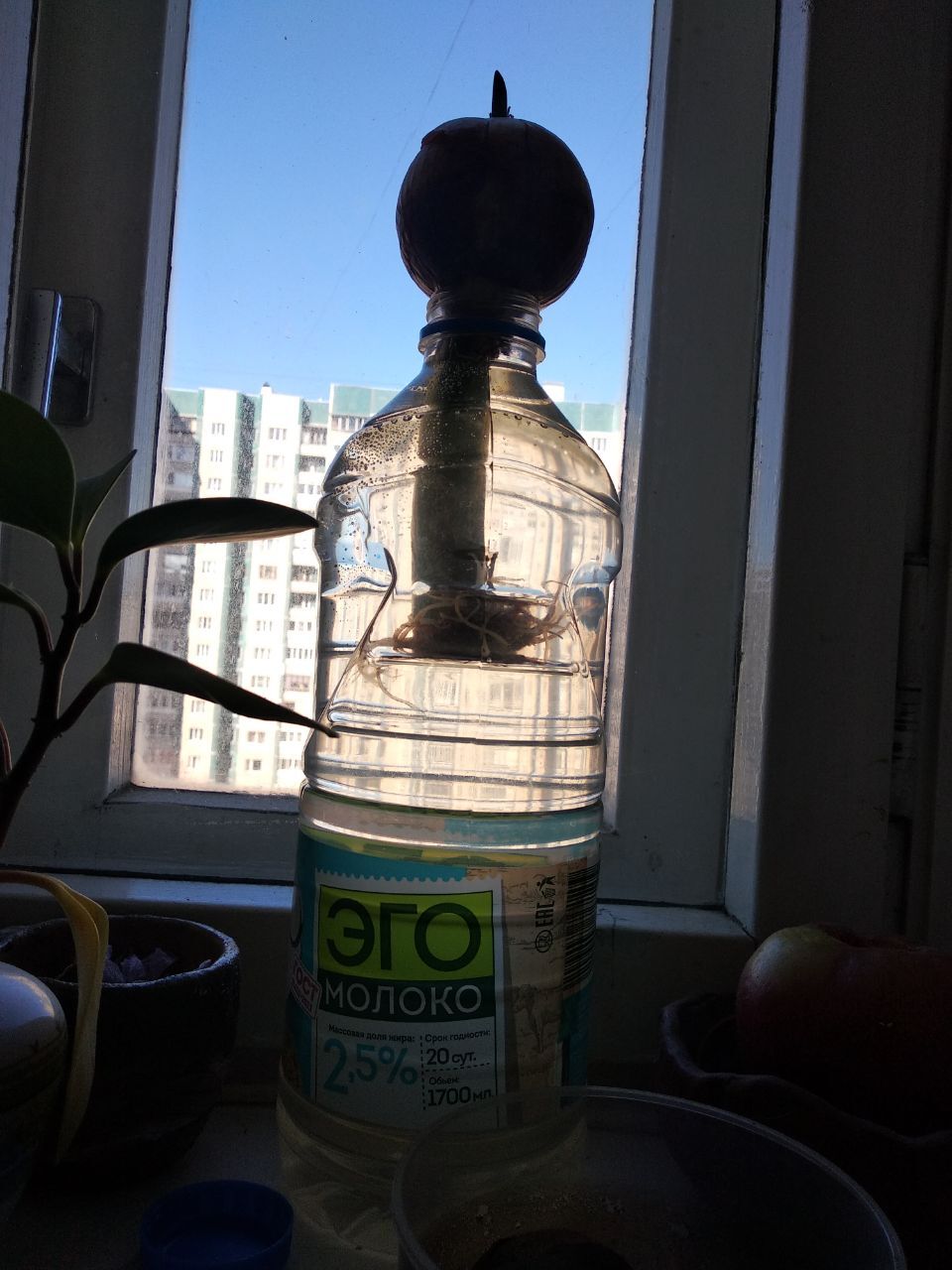Но тут мне стало интересно, насколько он упертый, и я пересадил его в бутылку, где до дна еще далеко. И - вуаля!