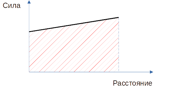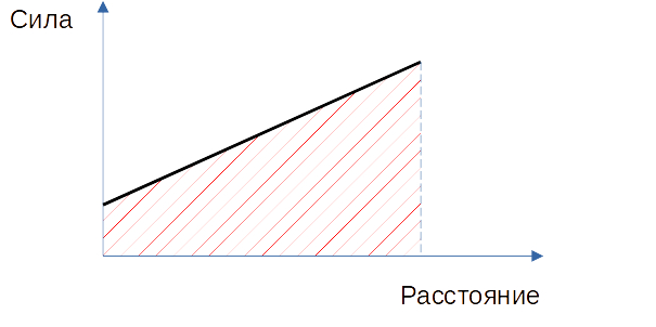Так вот, выполненная работа или, что то же самое, накопленная потенциальная энергия - это площадь под графиком: