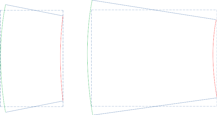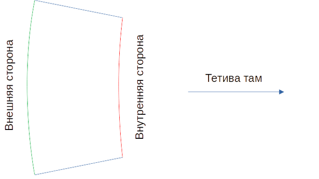 Несложно заметить, что внешняя сторона растягивается, внутренняя - сжимается. И этот эффект тем сильнее, чем толще у нас лук: