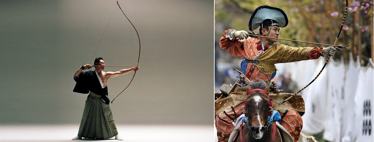 Японцы сделали хитрый лук с плечами разной длины - короткое нижнее и длинное верхнее:
