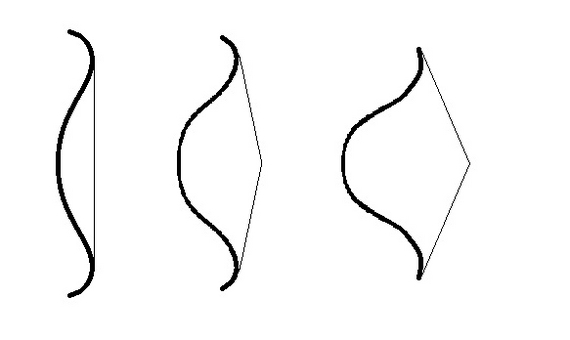 Именно этого пытается добиться рекурсивный лук. Когда мы его тянем, сначала сгибается центральная часть. Потом, по мере увеличения усилия на центральной части и изменения угла тетивы начинают сгибаться плечи и в конце - самые концы.