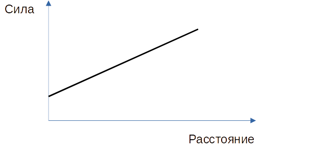Если мы возьмем прямой (обычный) лук и начнем его натягивать, то прилагаемая сила будет расти. Проще говоря, чем сильнее растягиваем, тем сложнее это делать. Можно нарисовать график: