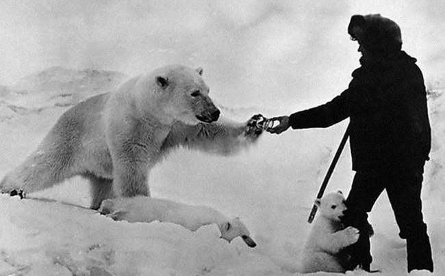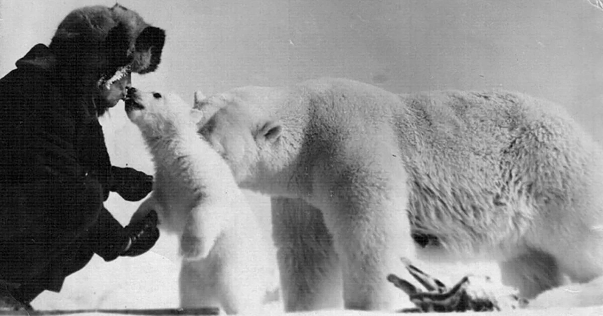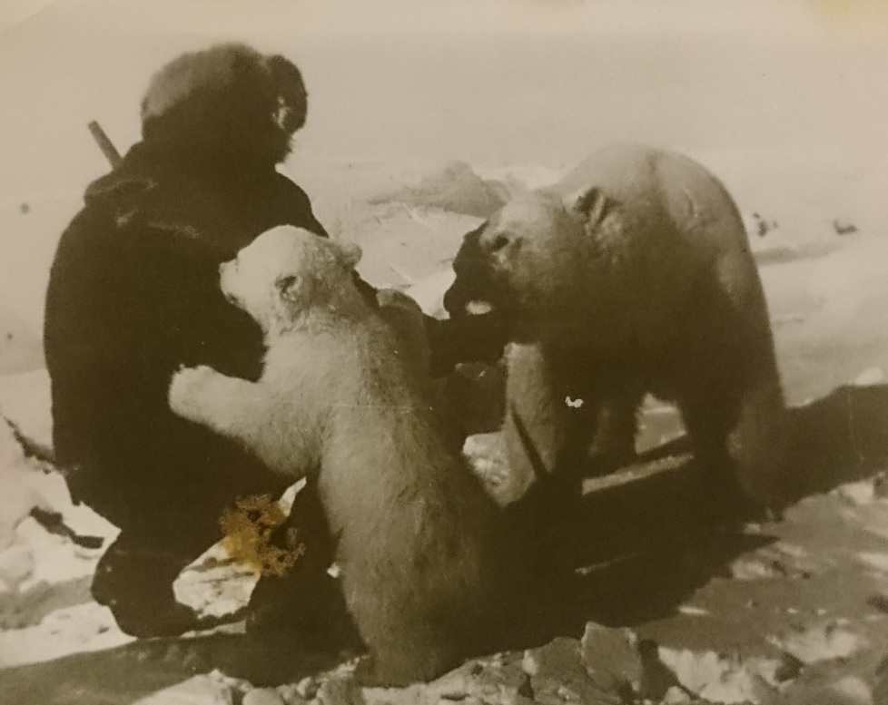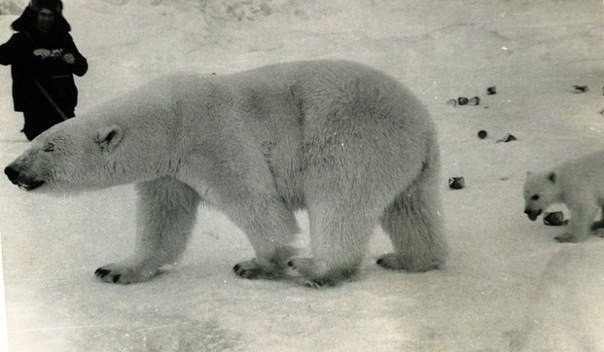 В 70-е годы дед ходил в составе автоколонны по маршруту между Эгвекинотом и Мысом Шмидта доставляя продукты питания и разные грузы. На этом пути в 1977 году и была сделана та фотография с белой медведицей и медвежонком. Ниже прикладываю ещё несколько фотографий с того дня: