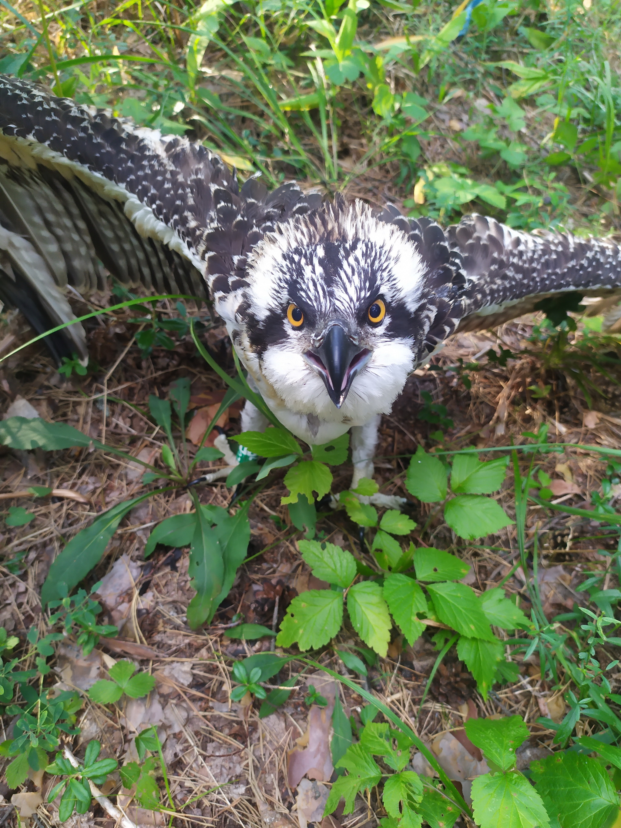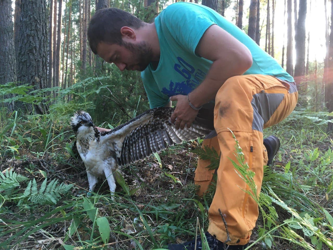 Этим летом мы пометили скопенка не только кольцом, как обычно, но и gps-трекером. Это нужно для того, чтобы получить максимально подробную информацию о перемещениях редкого хищника. Помимо точных координат трекер передает инфо о скорости птицы, температуры за бортом, высоте полета итд. Передатчик крепится как рюкзачок, имеет вес менее 3% веса птицы и каждый час отправляет смски с данными. Питается он от очень маленькой солнечной панельки. Причем можно перепрограммировать маячок "находу" и если птица долго сидит в одной точке, уменьшить частоту отправки, чтобы не разориться на смсках.