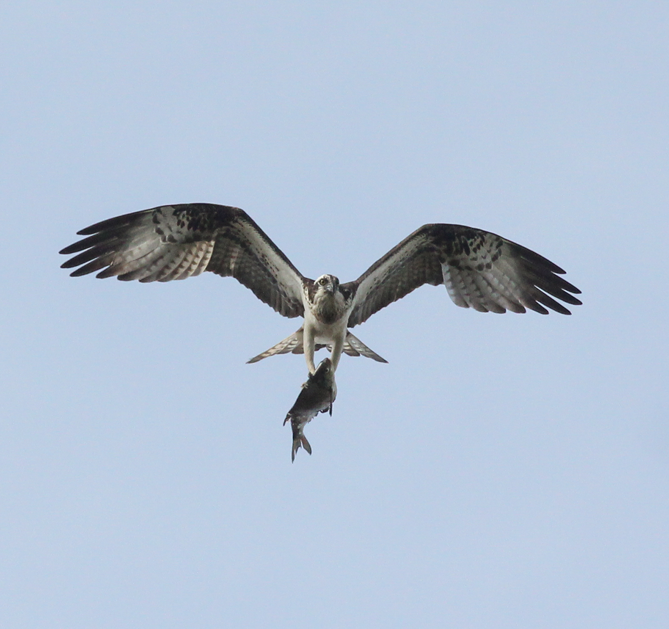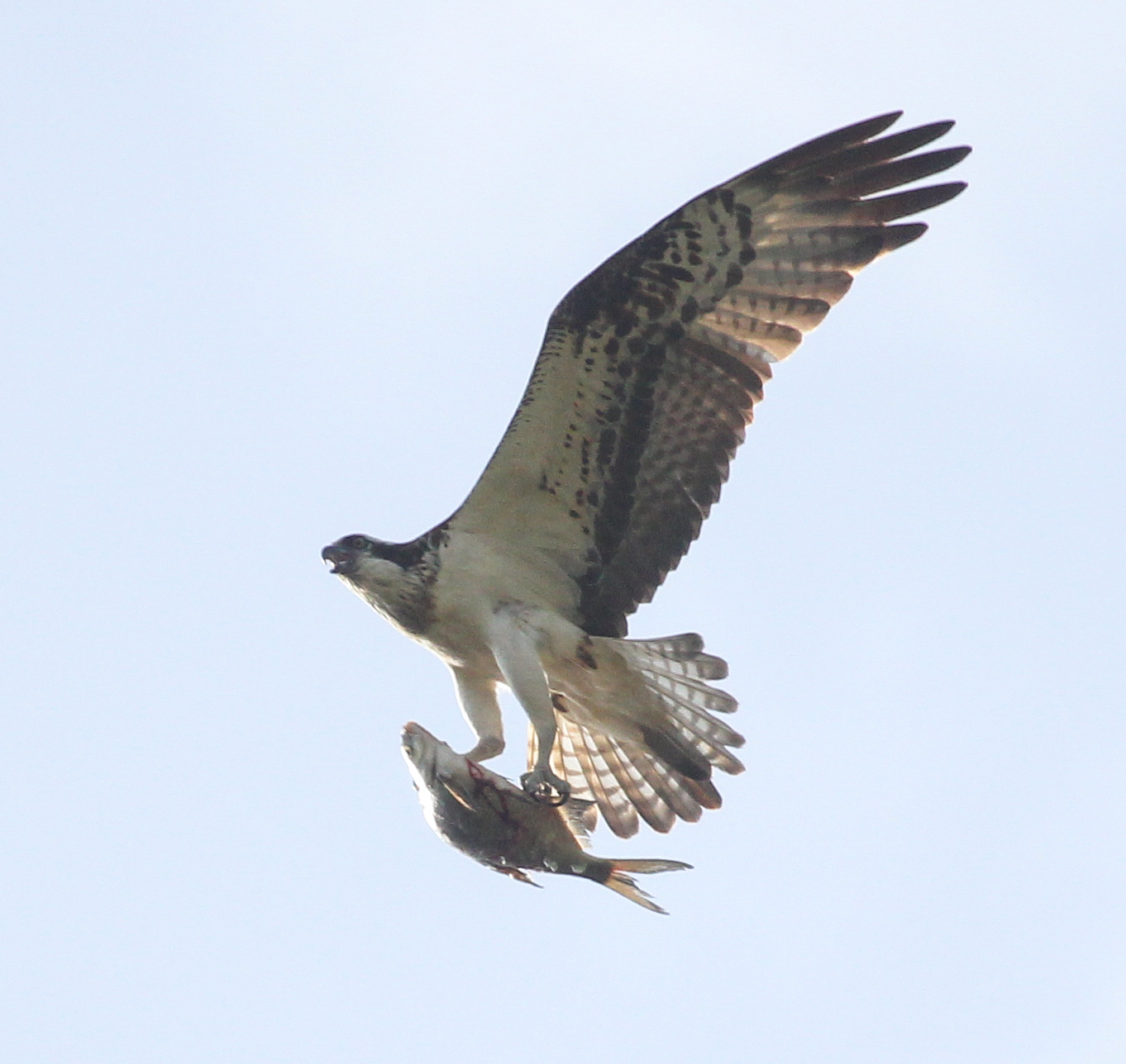 Александр (а может это Александра вообще) первый раз слетел с гнезда 26 июля. Долетел до сосенок в болоте, посидел там и после вернулся на гнездо. В течение следующего месяца он занимался исследованием окрестностей - летал до 14 км в разные направления от гнезда, несколько раз слетал на Волгу и один раз ее даже перелетел. Но больше всего он тусил на ближайшем озере, на том берегу, где нет пляжа и людей. Там он сидел в ожидании родителей со свежей рыбкой и периодически возвращался в гнездо.