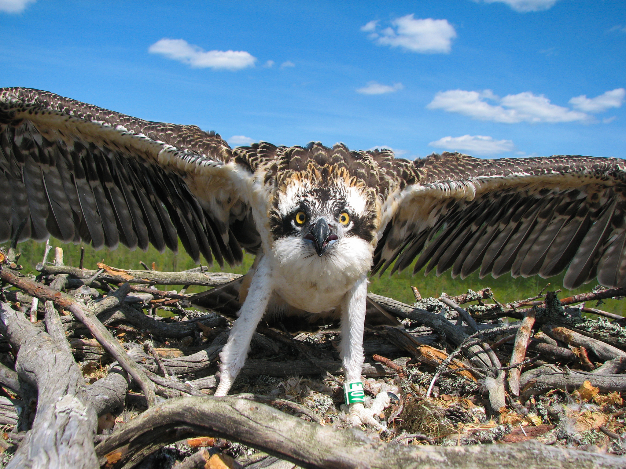 Скопы гнездятся неподалеку от водоемов, иногда летая на рыбалку за 15-20 км. Пара скоп, которая вырастила Санька поселилась в километре от озера и в 7 км от Волги в Нижегородской области, устроив гнездо на искусственной платформе на самой верхушке сосны. Скопы размножаются здесь ежегодно, поднимая на крыло обычно двух птенцов. В этом году они вырастили только одного птенца, которого мы назвали Саня (чтобы Александры думали, что это в их честь).
