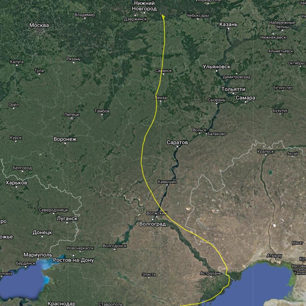 30 августа в обед он уже летел мимо Пензы, а полчетвертого пересек границу Саратовской области. Затем он резко взял в сторону Каспия и пролетел через Астраханским заповедник, где порыбачил.