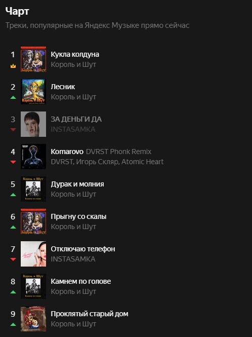 10 марта песня "Кукла колдуна" заняла 1е место в топе Яндекс чарта.