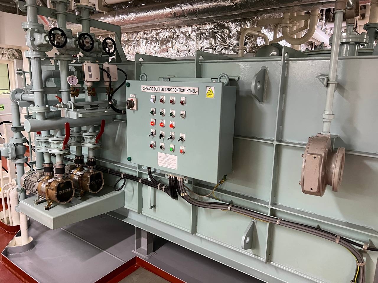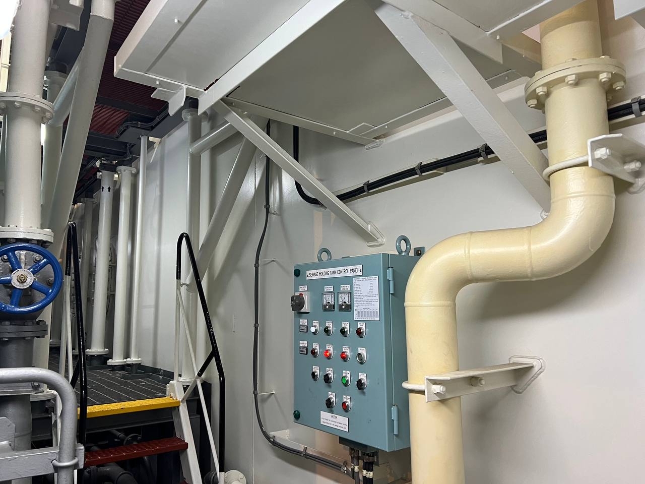 И вот на выходе мы имеем уже экологичную жидкость, безопасную для окружающей среды и если мы во льдах или в порту, то эта жидкость закачивается в Sewage Holding Tank или танк хранения.