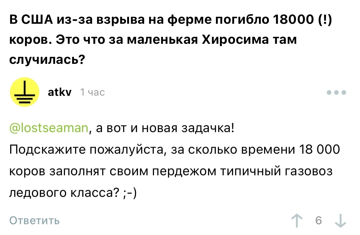 В комментариях к посту В США из-за взрыва на ферме погибло 18000 (!) коров. Это что за маленькая Хиросима там случилась?