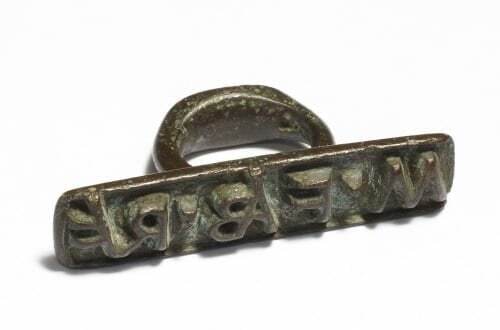 Бонзовое кольцо с печатью с зеркальной аббревиатурой M.FAB.RF (Марк Фабий Руф).
