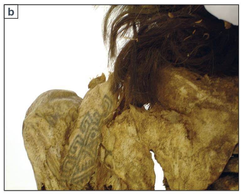 Тату на теле человека, жившего 1700 лет назад. Найден в современной Мексике.