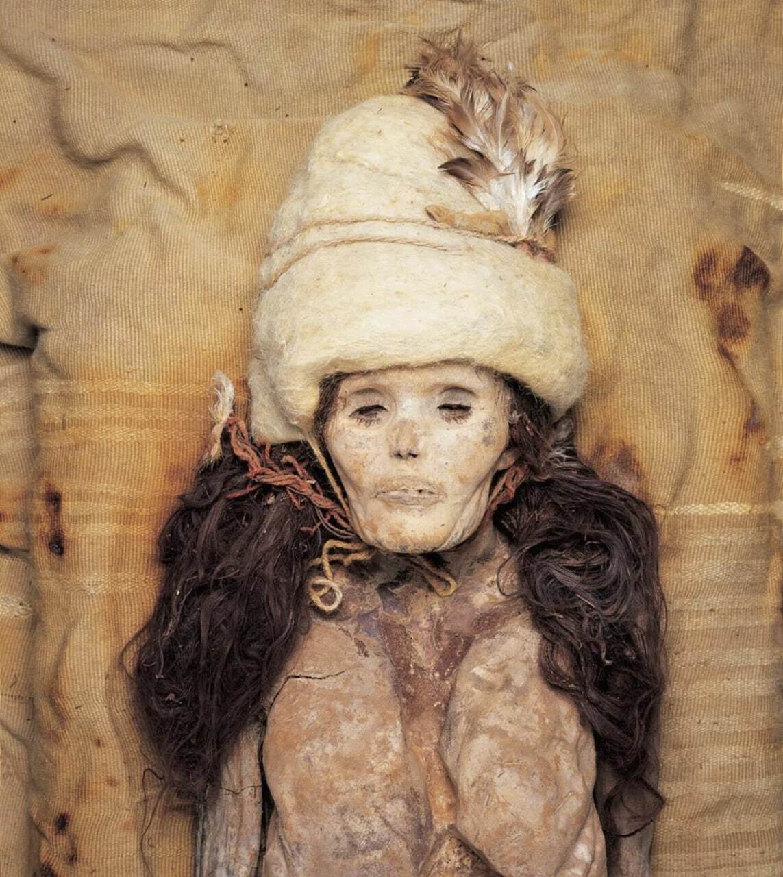 Мумия знатной женщины с территории современного Китая. Она жила 3800 лет назад. Это одна из таримских мумий, которых из-за европеоидных особенностей считали мигрантами из Западной Азии, хотя новое исследование показало, что на самом деле они были прямыми потомками местного населения ледникового периода.