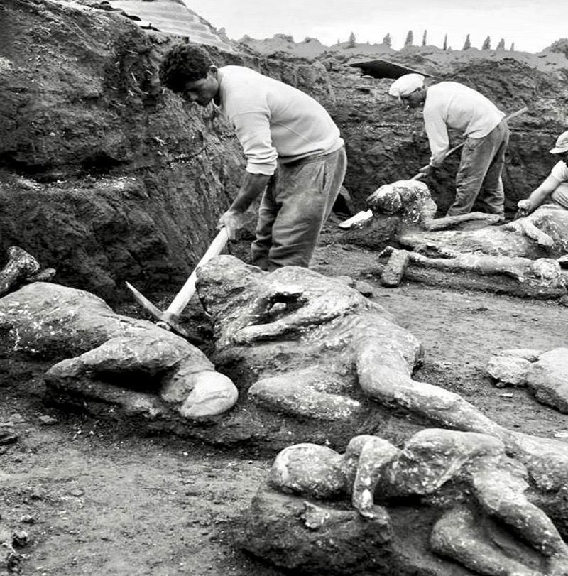Археологи раскапывают жертв извержения Везувия в Помпеи. 1 мая 1961 год.