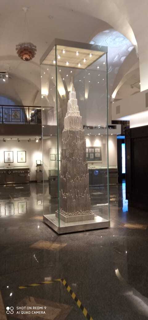 В нём расположена инсталляция Миллион. Миллион однорублевых монет сложенных в виде башни. Вес три тонны, высота 3.2 метра. Стоимость миллион рублей)