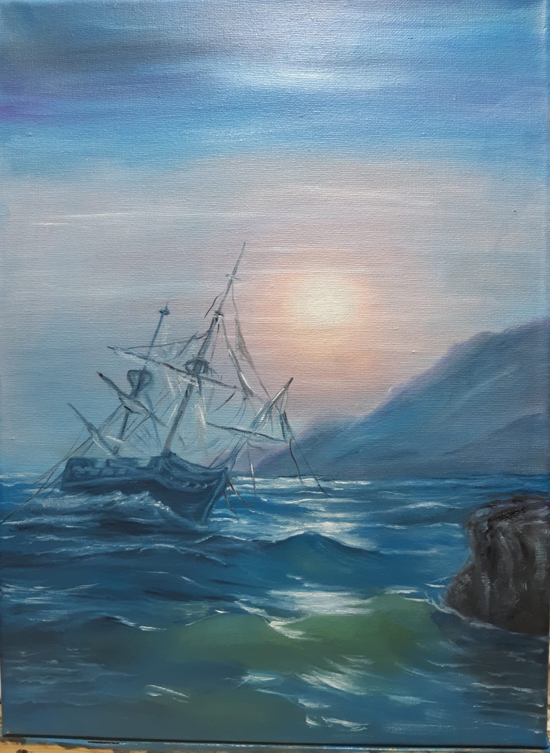 У неё пока что одна авторская картина "Усмиряющая бурю".