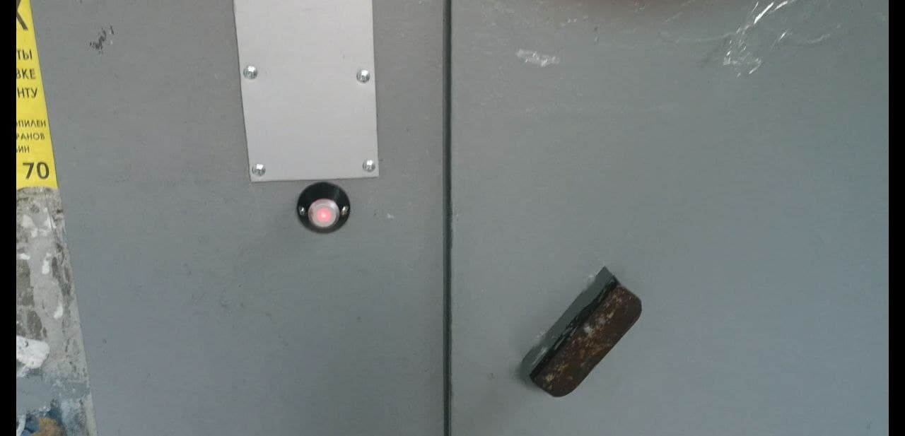 В каждую квартиру вывели такие кнопки для открытия двери не выходя из дома. Старый провод шел к домофонной трубке, теперь вместо трубки кнопка.