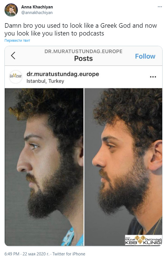 "Блин, бро, ты раньше выглядел, как греческий бог, а теперь выглядишь, как будто слушаешь подкасты".