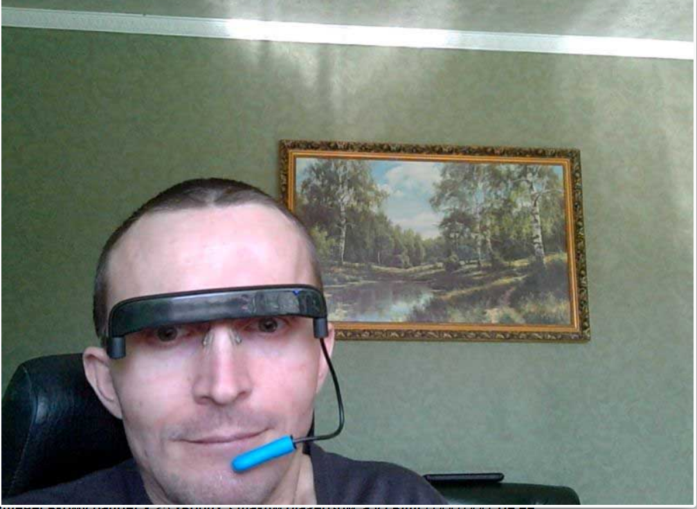 На голове у меня устройство GlassOuse, которое заменяет мне руки и мышку.