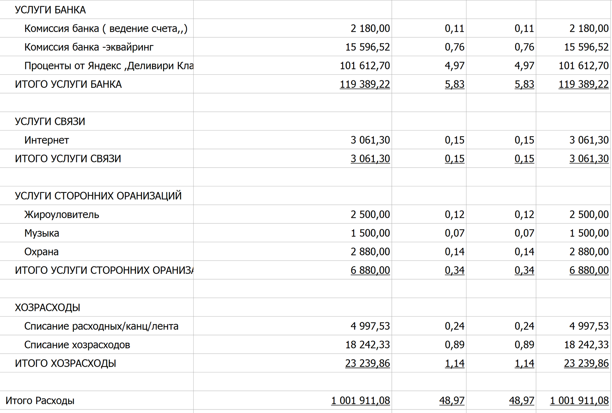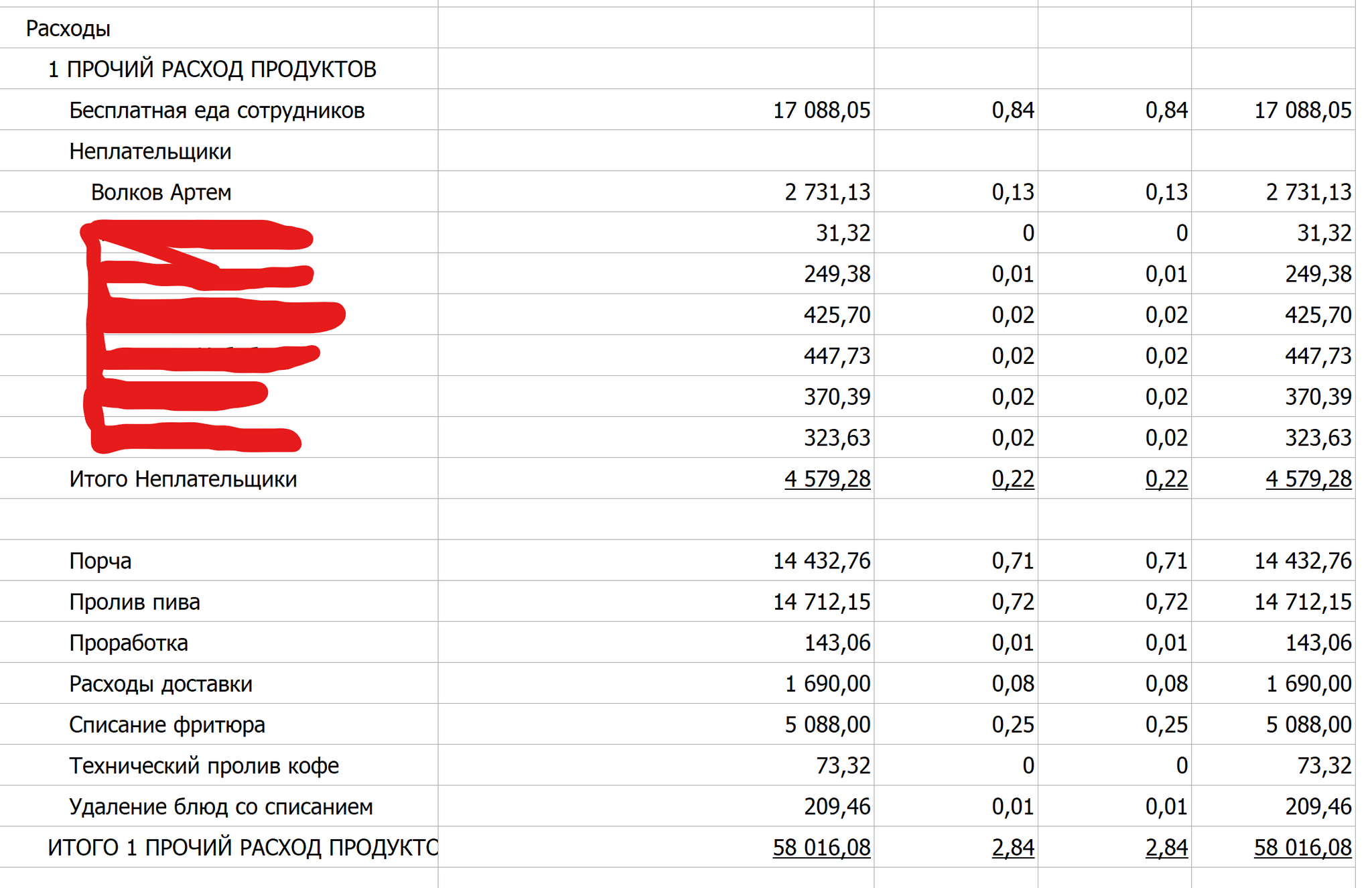 А если без шуток, то обеды для сотрудников, не считая каких-то доп. расходов, в себестоимости за месяц вышли в 17 тысяч рублей. Порча продуктов (сгорело мясо, где-то что-то уронили и тд) еще на 14,5 тысяч.