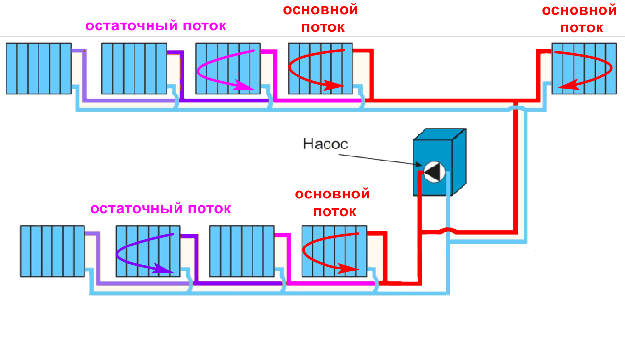 Частая проблема ненастроенных систем отопления в том, что основной поток горячей воды идёт только через ближайшие радиаторы. А на дальние не хватает потока. И как следствие ближайшие батареи к котлу «огняные» а дальние чуть тёплые.