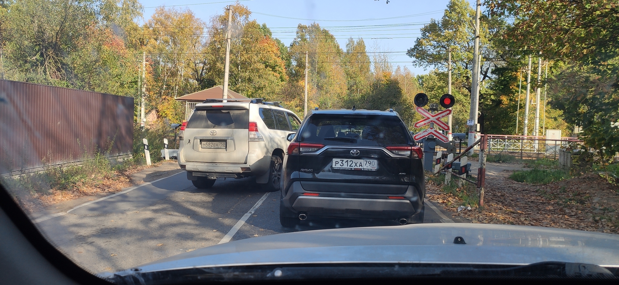 В подмосковной Лобне на переезде стояла длинная вереница машин.