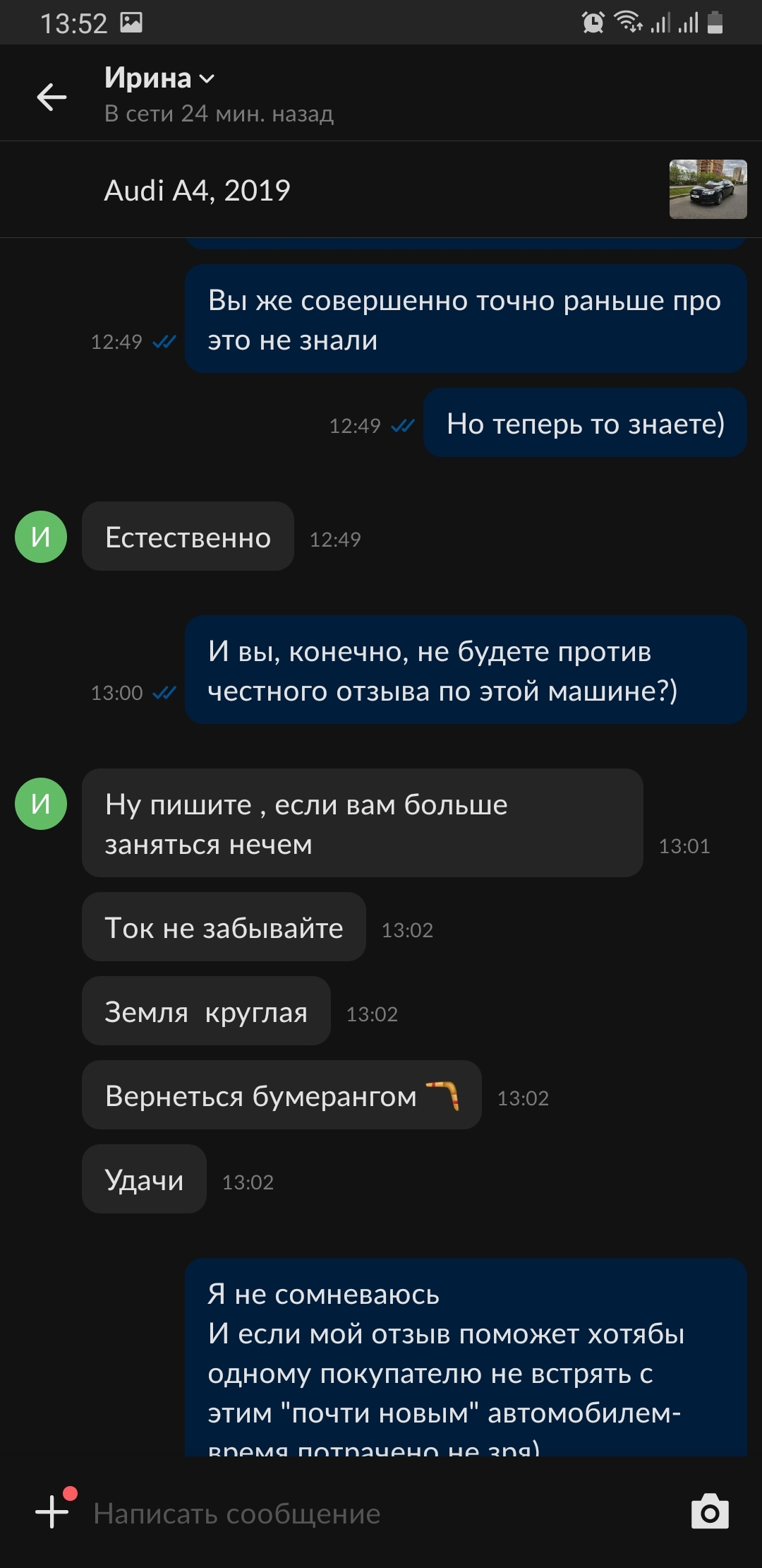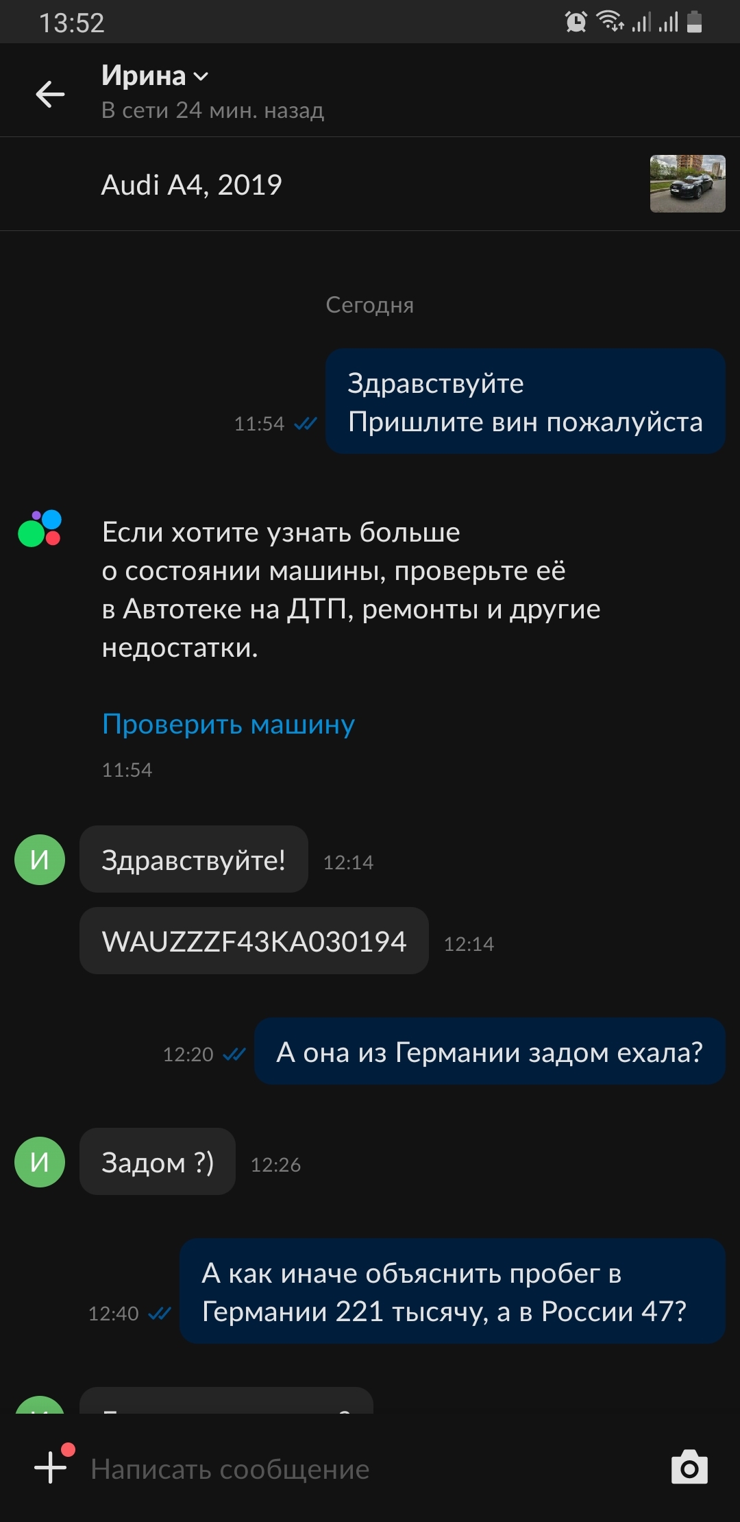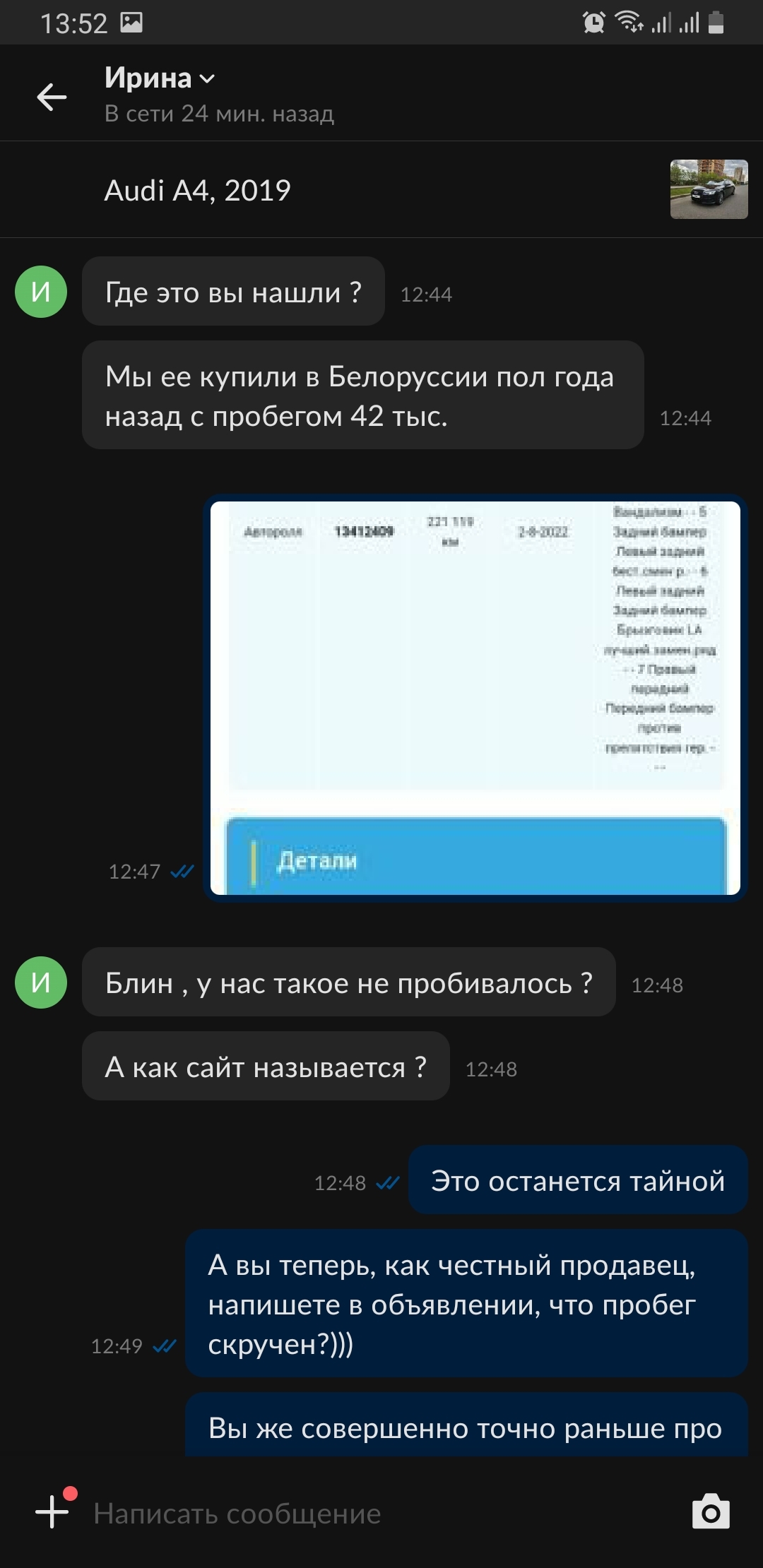 Еще посылал им ссылку и pdf-файл свежей выписки из Автотеки на мою машину. У меня она уже была и почему бы не сэкономить потенциальным покупателям их время и деньги.